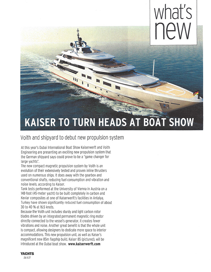 Kaiserwerft will be exhibiting a model of the Voith’s inline propulsion unit which we will use on our new Kaiser 45 at the Fort Lauderdale show.