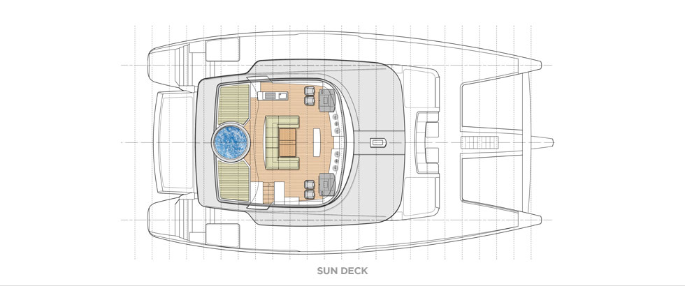 In the design particular emphasis has been given to the facility of movement aboard, particularly when moving between saloon and cockpit, cockpit and deck as well as between the deck and the tender via the large stern transoms. Large picture windows also ensure superb light and excellent visibility outside while the cabins are protected from the direct rays of the sun.