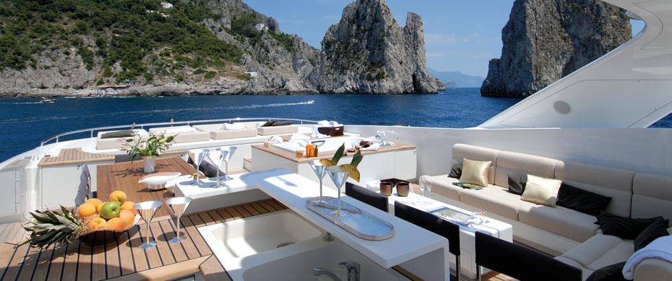 For those who prefer spend their time outdoors the flybridge features a whirlpool, sunloungers, a formal dining area and bar facilities. It is also the best location for sunbathing, alfresco dining and watching the spectacular coast pass by.