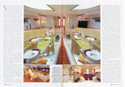 It is hard to imagine a more attractive interior for a luxury motor yacht built on spec than Birgit Schnaase's design for Catwalk, KaiserWerft's new 40,5 meter Baron 104. It has everything that appeals -uniqueness, high craftsmanship and the all- important feel-good factor deriving from alluring shapes and tactile materials. An aim of the design was to blur boundaries with the exterior, creating a sense of wholeness, and the very first conceptual drawing achieved that by echoing the long window line in the yacht's signature Catwalk which leads from the stern gateway through the saloon and up the stairs to the dining room.