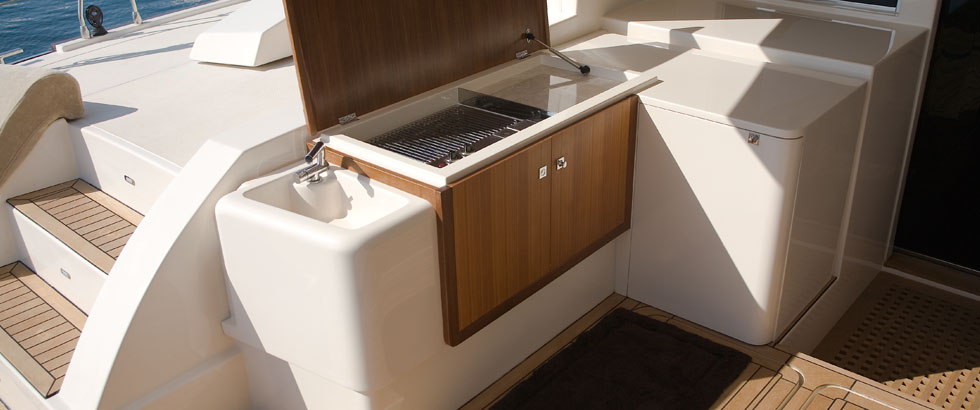 Exterior woodwork can comprise fitting of teak decks, capping rails, traditional companionways, skylights and cockpit furniture.